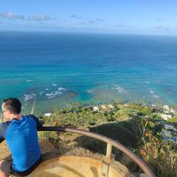 It was a warm walk, and surprisingly busy at 6am as we walked down the Waikiki beachfront. We had a quick stop at the Duke Kahanamoku statue before continuing on. Duke was a Hawaiian and a famous surfer who brought awareness to surfing as a sport. He also took part in two Olympic games in the early 1900s. He's a pretty interesting guy.