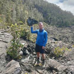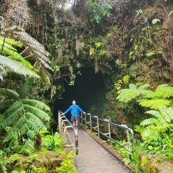 We continued our walk through the crater with Allan running up and down piles of lava. We got to the other side, and had to climb back out via many switchbacks in the forest. This was always my least favorite part of the hike, and turns out it still is! It just feels like it takes an eternity climbing back up. We finally got back out and made our way across the street to Thurston Lava Tube.