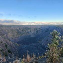 Our first activity was the Kilauea Iki Crater hike. I love this hike and did it every Christmas vacation when we lived in Hawaii. It was a nostalgic walk for me, but also really fun to share it with Allan this time. We walked through the forest along the top edge of the crater, every now and then getting a glimpse down inside. The inside of the crater was formed by a lava lake from the 1959 eruption. It is one of the coolest parts of the hike. After we walked halfway around the crater, we began the switchbacks down into the former lava lake.