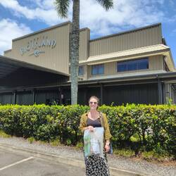 We left the river with its boiling pots and waterfalls behind and finished the short drive into Hilo town center. The next stop was at Big Island Candies. It was very different from the last time I was there, and that's probably because of COVID. When we walked in, a woman handed us a couple of samples at the door, but they used to have so many samples all around the shop. It was a little disappointing not to get to try all of the different things, but we would just have to make do. We browsed all of the different items: the cookies, chocolates, and toffees, before deciding to get a small multi-treat box. This way we can try a little bit of a few different things.