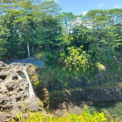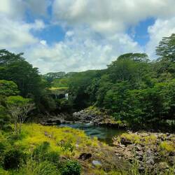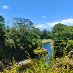 After Rainbow Falls we went to Boiling Pots up the street. This is a series of small pools that when the water flows heavy and fast, the water looks like its boiling because of the air bubbles in the rock. There's a story about the god Maui boiling the water to trap and defeat a giant lizard that went after his mother. The water, much like at Rainbow Falls from the same water source, wasn't flowing heavy enough to make it look like it was boiling.