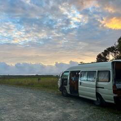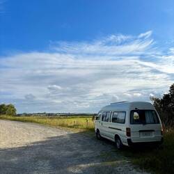 Onderweg wisselde enorme stortbuien het droge weer af, en met kapotte ruitenwissers (eentje was er inmiddels afgevallen 🙃), was dit een kleine uitdaging. Maar door te stoppen wanneer het keihard begon te regenen, inclusief een pie en koffie bij een heel schattig cafeetje langs de weg in Dunsandel, ben ik veilig aangekomen bij de autozaak van Darcy om Big John in te leveren en terug te keren naar het hostel waar ik voor dit avontuur ook verbleef.