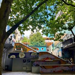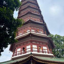 Ik was al snel klaar met deze kale bedoeling, dus pakte ik een metro naar een ander deel van de stad. Duidelijk een stuk armer gebied, waar de straat vol was met hele kleine winkeltjes. Allemaal (voor zover ze open waren) heel basic, maar daardoor vond ik het juist bijzonder om te zien. Deed me een beetje denken aan Centraal-Azië. Hier is ook een grote overdekte markt voor traditionele Chinese medicijnen (waarvan de Nieuw-Zeelandse biosecurity spontaan een paniekaanval zou krijgen denk ik), maar die was helaas dicht. Na nog een stukje met de metro, die al steeds drukker werd, net als op straat, kwam ik bij de Temple of the Six Banyan Trees uit. Ik verwachte een wat uitgestorven toeristische attractie, maar dit was juist de meest levendige plek die ik tegenkwam, met alleen maar Chinezen die daar heel serieus de Buddha's aan het aanbidden waren! Er werden geschenken gedaan (van geld tot blikjes cola), en er konden een soort posters gemaakt worden. Posters zal vast de meest denigrerende term ooit zijn, maar ik had niet echt de tijd en rust om te vragen wat het was. Ondertussen heb ik bij één van de winkeltjes een soort broodje gehaald, die eruit zag alsof ik het vliegveld nog wel levend kon halen. Het liefst had ik van alles geprobeerd, maar omdat ik geen idee had wat ik allemaal in m'n bek zou stoppen en hygiëne geen topprioriteit leek te hebben in deze buurt, speelde ik het voor deze ene keer maar op safe. Het was een heerlijk broodje met een soort room erin, veel ei, met aan beide uiteinden een soort fluffig, oranje spul. Absoluut geen idee wat dat was, en toen ik aan het vrolijke oude mannetje met wat wijswerk en simpel Engels probeerde te vragen wat het was, zei hij vol trots: "good morning". Ik deed maar alsof dat het perfecte antwoord op m'n vraag was, en liep weer verder.