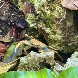 Savonds was vooral lekker, omdat we weer bij elkaar kwamen om de twee Uga's te eten! Eentje was sochtends nog ontsnapt, maar ze hadden een tweede uit eigen voorraad meegenomen. Ze houden er altijd een paar die ze extra veel kokosnoot voeren, zodat ze nog meer smaak hebben. Ik heb eigenlijk nog nooit op deze manier krab gegeten, maar ze waren erg smakelijk! Ze hadden er ook nog een soort aardappel bij gekookt, die je kon dippen in de eitjes van de krab zelf. Die zitten bij de maag van de krab, het harde stuk aan de achterkant. Die krakte ze in een keer open, waardoor er een soort natuurlijke dipsaus ontstond 🙃.