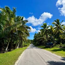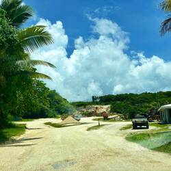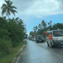 Daarna ben ik doorgereden naar een ander pad wat uiteindelijk nergens op uitliep. Wel kwam ik nog een andere, stuk grotere krab tegen, wat later een Uga bleek te zijn volgens Ozwin, ook wel de Coconut Crab. Het zijn blijkbaar de grootste geleedpotigen ter wereld, en een cultureel symbool in Niue! Ze groeien erg langzaam en kunnen tot wel 60 jaar oud worden. Op hun grootst wegen ze 4 kilo en hebben ze spanwijdte van bijna een meter! Deze was wat kleiner, en dus wat jonger. Omdat ze een cultureel symbool zijn, en om te voorkomen dat ze uitsterven, mag er maar heel beperkt gejaagd worden op deze beesten. En waarom heten ze dan Coconut Crabs? Nou, omdat ze één van de sterkste beten hebben van alle landdieren! Hun beet is net zo sterk als die van een leeuw en kunnen zo dus kokosnoten openkraken. Op de weg terug naar m'n stekkie kwam ik opeens een stoet van zo'n 15 auto's tegen, allemaal met keiharde muziek, allerlei vlaggen, en hele blije mensen en kinderen achter op pick-ups. Terwijl ze langzaam voorbij reden vroeg ik aan iemand wat er gevierd werd. Niks blijkbaar, dit doen ze simpelweg vaker wanneer ze er zin in hebben! Vaak op zaterdagen gaan ze met het hele dorp (wat dus ook niet heel veel meer is dan 15 auto's) een rondje om het eiland rijden terwijl ze een feestje vieren.