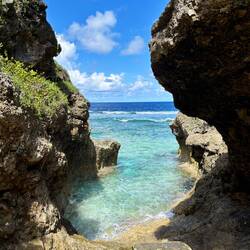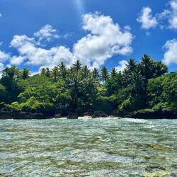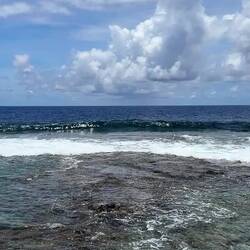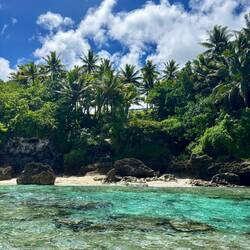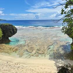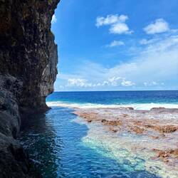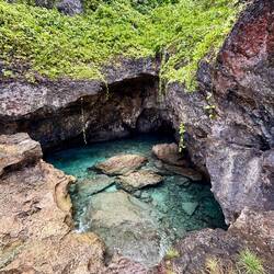 Vandaag zouden we eigenlijk op de snorkel tour gaan, maar die is afgelast vanwege de condities op zee. Nieuw-Zeeland heeft nogal last van slecht weer (net op tijd weg), en dat heeft niet per se gevolgen voor het weer hier, maar wel op de zee blijkbaar. Die is ruiger dan normaal, en dus konden we niet het water op. In plaats daarvan ben ik zelf naar Matapa Chasm gereden. De derde grote kloof, en misschien wel de mooiste! Na Togo, waar veel palmbomen in stonden, en na Anapala, de extreem smalle, was dit een vrij brede met heerlijk water om in te zwemmen! Ook hier merkte je de ruige zee wel, want soms kwamen er golven water de kloof binnen die best veel kracht hadden, waardoor je naar achter werd gesleurd, en daarna door de rip weer naar voren. Het was eigenlijk een soort natuurlijk golfslagbad dus. Aan het einde van de kloof kon je nog net de kustlijn zien, waar de golven hard tegen de kliffen op botsten. Mooi plekkie om af te koelen dus, en weer mooie vissies gezien!