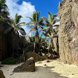 Vanaf hetzelfde punt als waar je naar de kloof loopt, kan je ook naar de Talava Arches lopen. Dit is een iets langere wandeling door de bossen en het koraal, waar je door een grot bij een prachtige open baai terecht komt, met twee grote bogen. Na de grot sta je bijna direct onder de eerste, en de tweede kon je bereiken door het water bij laagtij. Smiddags kwam de zus van Ozwin weer langs, deze keer met Cassave, van de plantage van de familie. Deze heb ik savonds verwerkt in een lekker pastaatje met makreel, aardappel, wortel, en dus de cassave :)Read more