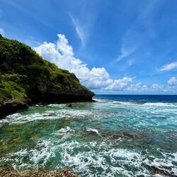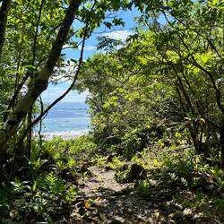 Na de eerste nacht zweten ging ik op pad! Togo Chasm was het doel, een kloof hier niet ver vandaan (hoe kan het ook anders...). Omdat de weg het hele eiland rondgaat vlak langs de kust zijn de wandelingetjes naar stranden/kustlijnen niet meer dan 10 minuutjes, dus ik was er snel. Na een stuk door het bos met een gek vogelgeluid (heb de vogel zelf niet kunnen spotten) en heel veel salamandertjes en krabben, kwam ik aan bij de kloof. Aan de bovenkant een mooi uitzicht over de oceaan, en in de kloof een beeld wat leek op een heel cliché piratenfilm of onbewoond eiland scène.