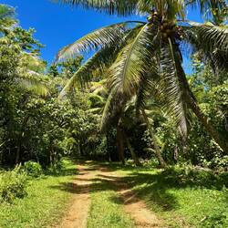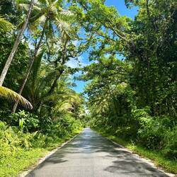 Daarna ging het licht weer in en terug naar huis. Ik nam 1 van de drie wegen die het eiland doorkruisen via het binnenland, en dat is eigenlijk aan maar regenwoud. Er woont niemand in het binnenland, en er zijn alleen maar wat plantages hier en daar (papaya's, ander exotisch fruit, en vanille).