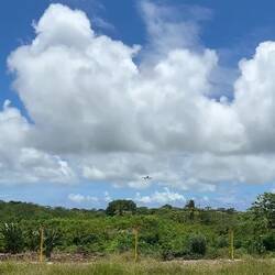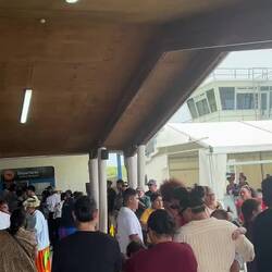 Na nog wat vis te hebben gegeten en afscheid te hebben genomen van Ozwin en co, moest ik toch echt weer terug naar het vliegveld, waar het een gezellige boel was. Iedereen kwam mensen uitzwaaien, of waren al aan het wachten op mensen. Ook waren er kleine tentjes waar nog eten en drinken werd verkocht (inclusief Agatha, de kokosbrood vrouw). Er waren nog meer bekenden die ik heb ontmoet op het eiland, zoals de man van de Uga tour, die kwam z'n buurman uitzwaaien maar kwam vooral kwam voor de gezelligheid. Ook was de fotograaf er weer die foto's van iedereen maakte bij aankomst twee weken geleden, nu maakte hij foto's van iedereen die vertrok. En die man bleek dus niemand minder dan BV, de oud-minister die zich volgooide met alcohol bij Lawn Bowl op zaterdag! En daar hield het niet op, want terwijl ik m'n tas door de xray liet gaan, hoorde ik naast me "hey, Bram man!". Daar stond Richard, chief of police die vandaag de douane deed. Nog een babbeltje gemaakt, en als ik terug kom moet ik zeker bij hem langskomen zei die. Inmiddels waren wij degenen die alles ophielden door het socializen, dus hij ging weer aan het werk. Echt super komisch hoe je zo weer iedereen tegenkomt!