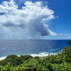 Vandaag een fietsavontuur! Niue heeft vijf mountainbikeroutes, waarvan de wandeling van vorige week er één van was. Ondanks dat die voor een deel overwoekerd was en niet befietsbaar was, heb ik toch een fiets gehuurd voor de dag bij het tourist centre. Elke keer als ik daar binnenloop is dezelfde vrouw er, die de hele dag niks uitvoert omdat er zo weinig toeristen zijn. Eenmaal op pad besloot ik geen mountainbike route te doen, maar gewoon lekker te fietsen. Uiteindelijk heb ik een rondje Niue gedaan, alle 64 de kilometers rondom het eiland! Het was zonnig en heet, dus het was flink afzien (en insmeren) geblazen. Maar, zo heb ik nog wel een laatste keer alles kunnen zien, en een goeie workout gehad!
