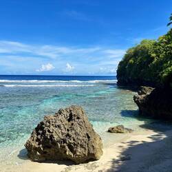 Niue is vrij Christelijk, dus zondag is rustdag. Bijna alles is gesloten, je mag niet zwemmen in de buurt van de kerk, en ook rondlopen in een zwembroek is eigenlijk niet de bedoeling. En al die kerken, elk dorp heeft er één, vrij groot ook, hebben om 10 uur hun dienst. Dus ook ik ben daar heengegaan! Om maar een beetje Christelijk gekleed te zijn heb ik maar een lange broek aangetrokken en een te klein lange mouwen t-shirt (die al zes maanden ongebruikt in m'n tas zat), dus het was zweten geblazen. De Niueans hadden allemaal hun zondagskleding aan, wat er erg mooi uitzag! Vrouwen hadden allemaal hele fleurige jurken aan, bloemen in het haar en een hoed op, en de mannen hadden fleurige overhempjes, sommigen met keurige schoenen, anderen met slippers of crocs 🙃. De oudere mannen waren allemaal keurig in pak. Bij binnenkomst leken ze positief verrast te zijn dat ik er was, ondanks m'n niet zo kerkelijke kleding. Het hele gebeuren duurde anderhalf uur, en omdat vrijwel alles in Niuean was met soms een enkel Engels zinnetje er doorheen gesprenkeld, was het een lange zit. De drie liederen die werden gezongen waren wel erg mooi, alle drie op een heel vrolijk en funky ritme, wat mooie bij de kleurrijke outfits pastte. En toen... ging de bak voor het geld rond, en ik had geen ene cent op zak. Met het schaamrood op de kaken fluisterde ik dat ik niks bij me had, maar de man lachte wat en ging verder.