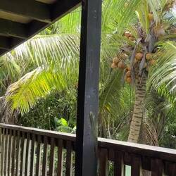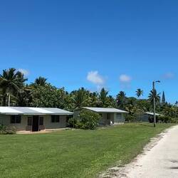 Bij de derde lading zat mijn tas ertussen, en kon ik naar buiten. En daar leek het halve eiland wel te zitten! Het zat volgepakt met mensen, allemaal hard aan het praten, lachen, juichen, weet ik veel wat allemaal. Een oudere man met een fotocamera maakte in z'n bloemenoverhemdje allemaal fotos van iedereen, en allerlei mensen werden vrolijk onthaald. En ik... ja, ik was vergeten nog contact op te nemen met m'n host, dus ik had alleen een naam 😬. Omdat alles zo ons kent ons leek, heb ik maar een willekeurige vrouw aangesproken, en het was direct raak. Ozwin is klein en kaal zei ze, en ze trok me mee door de menigte. "Meestal staat ie rechtsachterin", zei ze. Maar geen Ozwin te bekennen. Er werden andere mensen bijgehaald om zich bij dit zoekteam aan te sluiten. Op een gegeven moment was de zus van Ozwin gevonden, Joy. Joy vertelde dat haar neefje me op zou komen halen. Maar waar is neefje? Vrij snel kwam neefje al aan lopen, en was ik in goede handen. Toen ik me verontschuldigde dat ik niks had gecommuniceerd, zei Joy: "well, that's Niue style, so you're adjusting to Niuean culture really well". Met de auto vertrokken we naar de accommodatie, een kwartiertje verderop. Het is een rijtje met twee studiootjes, in de andere blijkt een Amerikaan te zitten. Voor de rest is het heel rustig qua toeristen. De schoonzus van Ozwin (Ofa, die ook even kwam buurten) vertelde dat het hoogseizoen qua toeristen altijd in juli/augustus/september is vanwege het betere weer (iets frisser en minder regen) en dat het rond de feestdagen druk is met familie. Nu is het dus erg rustig op het eiland!