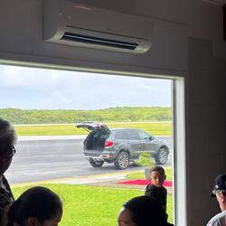Eenmaal in het vertrekhalletje begreep ik ook waarom je op het vliegveld moet zijn voordat het vliegtuig is geland. De douane (al het politiepersoneel van het eiland, daarom is het politiebureau ook gesloten op vrijdag) moet namelijk verhuizen van de vertrekhal naar de aankomsthal. Er is praktisch niet genoeg personeel om dat nog tegelijkertijd te kunnen doen 🙃. Oh ja, toen werd de oud premier nog uit een Ford SUV getild, al ging dat niet extreem soepel. De krans viel er vanaf en één van de zes kistdragers stond verkeerd en wilde hem weer terug naar het vliegtuig tillen haha.