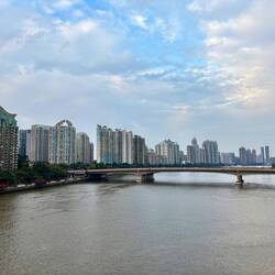 Guangzhou (uitgesproken als Gwangdzjo) heeft meer dan zes miljoen inwoners en ligt niet zo ver weg van Hong Kong en Shenzhen. Maar ondanks dat het zo'n grote stad is, was het vrijwel uitgestorven op de zondagochtend. Er waren alleen wat hardlopers en ploeg die de straten schoon aan het maken waren. Vandaag begint in Guangzhou de APEC (Asian Pacific Economic Cooperation), dus ze zullen hun beste beentje wel voor willen zetten. Ik begon in het business district, waar ook de Canton Tower staat, een toren van 150 meter hoog. Overal hangen camera's, en zelfs bij het opgaan van een loopbrug moest m'n tas door een xray en werd ik ook zelf gecontroleerd, al werd dat niet al te serieus genomen. Die agenten hadden geen reet te doen en stonden heerlijk peukies te roken.