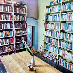 Maar het werk is leuk! Constant in gesprek met authentieke locals, en veel vaste gasten. Veel kletspraatjes, veel humor. Ook met de collega's trouwens! Het is een heel klein clubje collega's, maar dat maakt het juist heel gezellig. En de opmaak van het cafe maakt het helemaal af. Alles is oud, alle boeken zijn tweedehands, en het is zeker niet overal schoon, maar het is super knus door al die boeken, en je krijgt een leuke mix van mensen die door de boeken snuffelen en mensen die lunchen/drinken aan de tafeltjes.