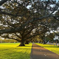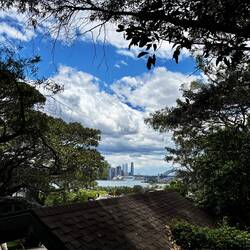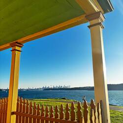 Halverwege kwam ik langs het Strickland Estate. Dit landgoed en bijbehorende gebouwen komen uit 1850, gemaakt voor de eerste burgemeester van de stad. Vervolgens is het een ziekenhuis geworden, een bejaardentehuis, maar sinds eind jaren 90 staat het leeg. Best bijzonder voor zo'n mooie en grote plek in deze wijk. Blijkbaar wordt het nu praktisch gebruikt als park (nog een reserve erbij), en zijn er soms evenementen. Omdat je goed uitzicht hebt op de Harbour Bridge, schijnt dit een populaire plek met oud en nieuw te zijn.