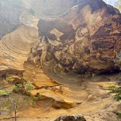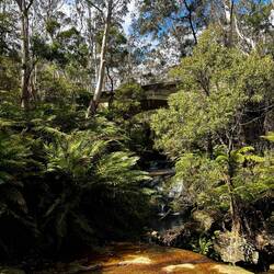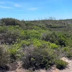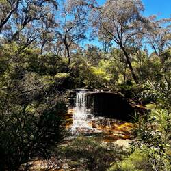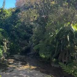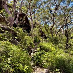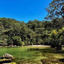 Eigenlijk zou ik hier omdraaien en terug naar Otford lopen, maar omdat het nog vrij vroeg was besloot ik naar Bundeena te lopen, aan de andere kant van de 32 kilometer. Heel bijzonder was de rest van de wandeling niet. Het was vooral een verzameling hele droge struiken, maar de kliffen en de beekjes die door de struiken uitliepen in kleine watervalletjes waren erg mooi. Jammer was dat er weinig beschutting was, en de uv index 11 was, dus het was zonnebrand smeren als een malle (en na zo'n dag kan je heel mooi zien waar je niet hebt gesmeerd... 😖).