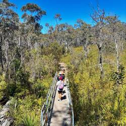 Het eerste stuk ging door best dichtbegroeid gebied, wat me een beetje aan Zuid-Amerika deed denken. Onderweg kwam ik nog een Lyrebird tegen, die toevallig nog twee weken geleden in m'n Indigenous Australia college voorbij kwam. De Lyrebird kan extreem goed geluiden nabootsen, hier is een linkje naar het filmpje wat we keken in het college (met David Attenborough natuurlijk): https://www.youtube.com/watch?v=VjE0Kdfos4Y