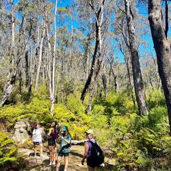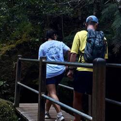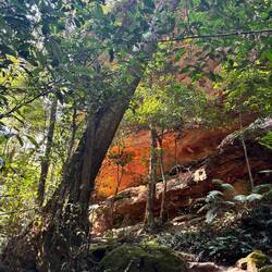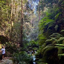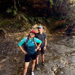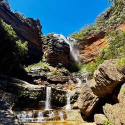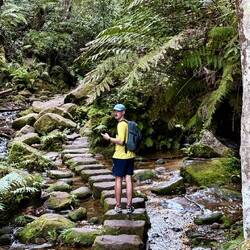 Vandaag een stevige wandeling! We hebben de bus naar Blackheath gepakt, een schattig, super rustig dorpje. We hebben een extra iemand meegenomen (Libby) uit het hostel. De wandeling begon in super droog, kneiter warm gebied, bovenaan de Blue Mountains. Geen toeristen, dus dat was perfect. Later verdwenen we naar beneden, waar we in een totaal andere wereld terecht kwamen. Zoveel koeler, heel nat, ongelooflijk groen, watervallen, riviertjes... beneden in de Blue Mountains was het regenwoud :).