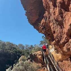 Na een vrij lang stuk wat niet per se heel moeilijk was, kwamen we bij een supersteile trap die aan geen einde leek te komen, totdat... de Wentworth falls tevoorschijn kwamen!