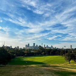 Inmiddels heb ik een favoriet avondwandelingetje die ik doe als ik niks beters te doen heb. In Moore park heb je een prachtig uitzicht op de skyline. In het midden is er een park met een groot sportveld in het midden, waar tegen zonsondergang allemaal sportlessen worden gegeven aan kinderen, dus het is gezellig druk. Daarnaast is het ook een hotspot voor hondenuitlaters.
