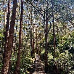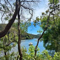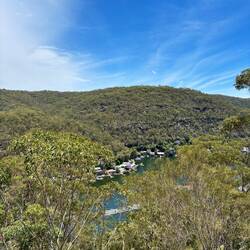 De route liep door heel mooi groen heuvelachtig gebied, met de Berowra Creek er dwars doorheen, een uitsteeksel van de zee. Op een gegeven moment kwam ik aan bij Berowra Waters, een soort gehucht met allemaal huizen direct aan het water en heel veel boten op de creek. Ook nog twee keer een Goanna tegengekomen, en Hagedis van bijna anderhalve meter 😶.