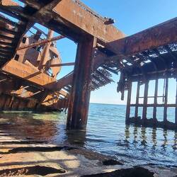 Nach einer langen schönen Fahrt entlang der Küstenstraße sind wir in Gynthia gelandet. Hier gibt es ein Schiffswrack zu sehen und der Sand ist soooo weich.