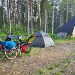 Mit Radler und Cashewnüssen in den Radtaschen setzten wir unsere Reise fort. Der Bremsenschwarm schwoll nach der Stadt zum Glück nicht mehr an und blieb bei maximal 6 Individuen. So dünsten wir zur goldenen Stunde durch die Gegend und bestaunten die volle Blumenpracht am Straßenrand. Unser Nachtlager schlugen wir zwischen drei Hütchen auf, die wir zufällig entdeckt haben. Im hintersten ist ein sauberes Plumpsklo, in der Mitte zwei Umkleidekabinen (war ideal nach dem Bad im See bei ordentlich Wind) und ganz vorne ist eine Lagerfeuerstelle. Das Knistern des Feuers ohne viele Mücken und das kühle Radler in der Hand haben den gesamten Tag wieder gut gemacht. Müde fielen uns um halb eins die Augen zu.Read more