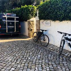Damit ging es für uns über Santa Cruz/Silveira nach Ericeria. Der Weg führte uns direkt an den Klippen oder auch mal am Sandstrand entlang. Aber dann ein herber Rückschlag. Auf dem steilen Weg nach oben machte es plötzlich einen Satz im Hinterrad und das Schaltwerk hing zwischen denn Speichen. Es war komplett verbogen, die Kette verdreht und es war für uns unmöglich, das Fahrrad nur einen cm zu schieben. So saßen wir auf der Klippe und überlegten uns einen Ausweg: ein paar Meter von uns entfernt, campte ein spanisches Pärchen, die uns glücklicherweise mit zurück zum nächsten Strand nahmen. Am Bus und Bahn war an der Stelle überhaupt nicht denken, maximal ein Uber hätte uns noch mitnehmen können. In einem Café trafen wir dann aber zufällig auf eine Gruppe Surfer. Einer von ihnen konnte uns mit nach Mafra nehmen (25km entfernt), wo wir den nächsten Fahrradladen fanden. Dort angekommen, haben uns 2 super nette Mitarbeiter vom Bikespot Mafra empfangen. Noch immer war uns bange, wie es weiter geht. Kommen wir heute noch nach Sintra? Halten wir unsere Zeit ein? Schaffen wir es morgen nach Lissabon.m? Fragen über Fragen. Dann aber die gute Nachricht: ‚the drop-out still works. we can change the rear derailleur.‘ - Jackpot nur 1h und dann läuft wieder alles. Am Ende wird also alles gut und wir konnten unsere Tour nach Sintra fortsetzen. Nach einer Berg- und Talfahrt kommen wir in unserem Hotel an. Das erste Auto mit Erzgebirgischem Kennzeichen steht direkt neben dem Eingang.. wir sind sprachlos und lachen.