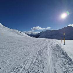 Ich spaziere nach Samnaun Compatsch zur Sennerei um einzukaufen.