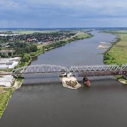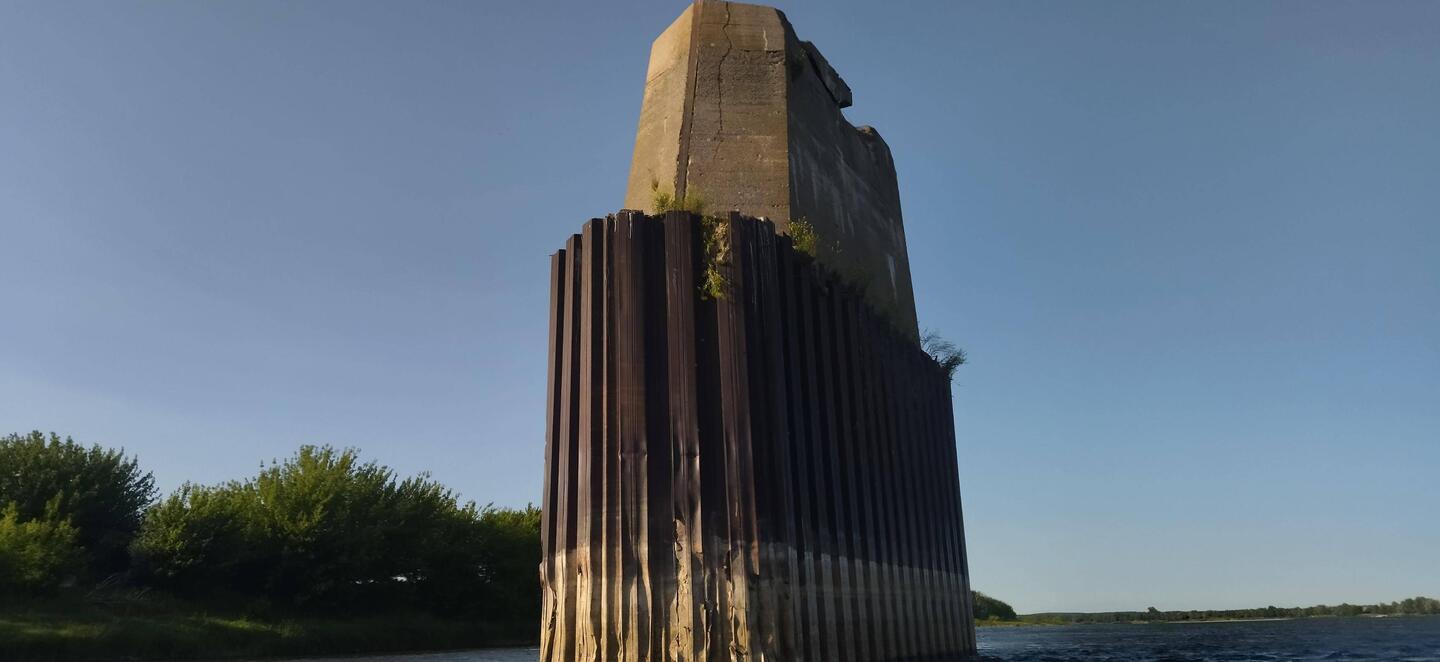 W nurcie Wisły tkwią nadal filary mostu kolejowego zbudowanego na początku XX wieku, a rozebranego w latach międzywojennych.