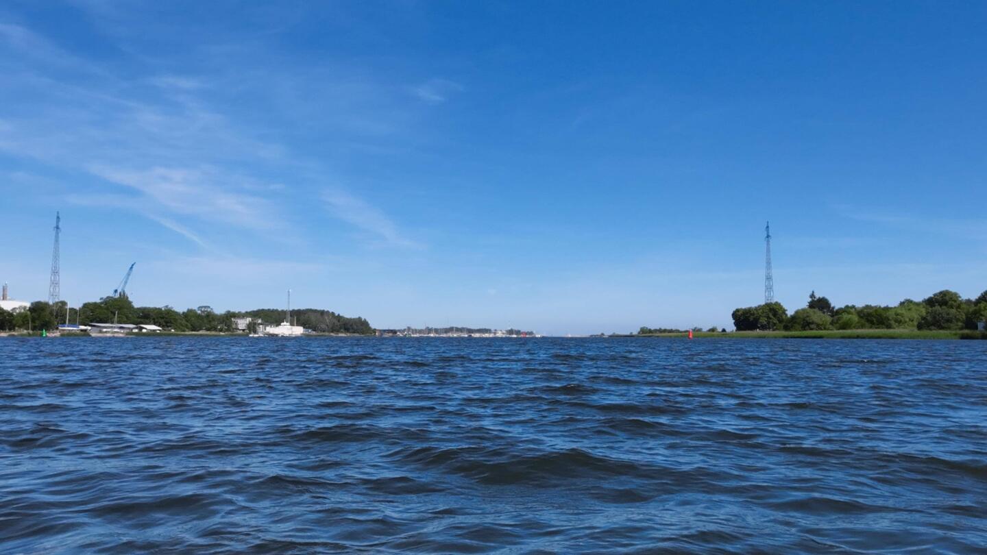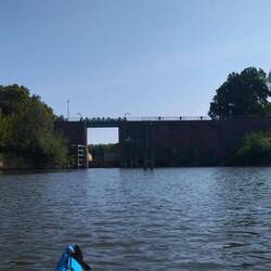 To już ostatnia prosta, do Bałtyku zostało ok. 10 km. Przepływam pod ostatnimi mostami drogowymi.