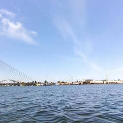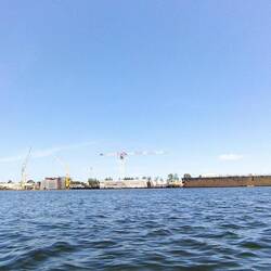 Płynę obok różnych nabrzeży, terminali przeładunkowych, magazynów, portów jachtowych, stoczni i masy przeróżnych statków. Lubię takie klimaty.