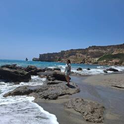 Heute geht's weiter Richtung Osten nach Kastri, Endlich Sonne und schön warm. 1. Ziel der Starnd von Triopetra, wunderschön zwischen den Klippen gelegen und was für ein Zufall, eine Taverne😅,Läs mer
