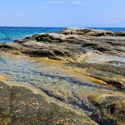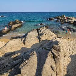 Heute geht's einmal um die Fingerspitze rum. Erster kurzer Stopp Porto Beach mit einer schönen Lagune, 2. Stopp zum Baden Palliouri, sehr schöne Bucht, Sandstrand mit klarem flachem Wasser.