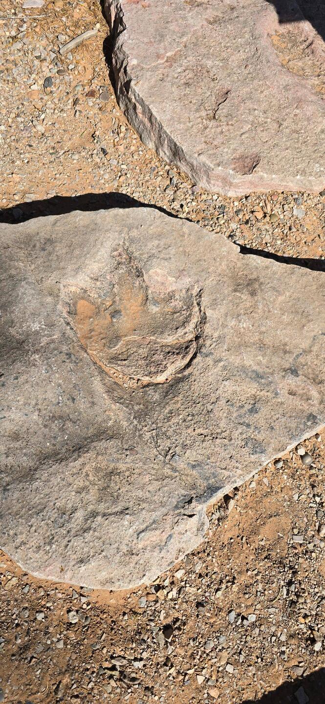 Der untere V-förmige Canyon ist aus meiner Sicht der schönere der beiden Teile. Er ist zudem länger, actionreicher und spannender. Ganz in der Nähe des Empfangsgebäudes steigt man wieder aus dem Boden. Dort hat es im Sandstein auch gleich noch Abdrücke eines Dinosauriers.