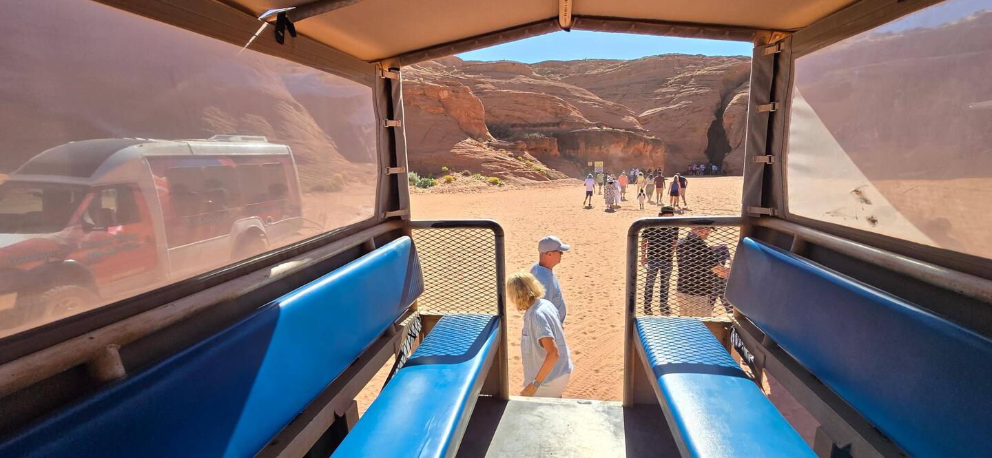 Die erste Buchung war telefonisch gestern erfolgt, für heute 9.35 am oberen Canyon. Also früh aus den Federn und nach dem Frühstück losgefahren. Pünktlich 30min davor angekommen, zum Schalter gegangen, angemeldet, 100$ bezahlt und festgestellt, dass ich die Zeitzone wieder zurück überschritten habe, und somit 1h zu früh war. Besser so, als umgekehrt. 🙏😁