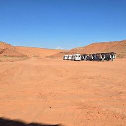 Praktisch 500m entfernt über den Highway drüber das Auto umparkiert, ist der Zugang zum Lower Antelope Canyon. Diese Buchung habe ich online 70$ für 12.35 gemacht gehabt. Beim Einchecken die war ich wieder viel zu früh und konnte eine Tour früher gehen, was noch etwas besser vom Licht her sein soll.