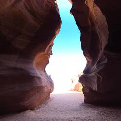 Die Tour startet mit einer 3 Mi langen Anfahrt über eine sehr holprige Piste. Vor Beginn hat unser Guide Andrew uns die Entstehung des Canyons toll erklärt. Der obere Canyon selbst ist auf Grund seiner A-förmigen Form einfach zu begehen, aber auch etwas dunkler aber schön anzusehen und über den Ausgang oben drüber (in Covid neu gemacht) einfach zum Canyon Eingang zurück zu spazieren, wieder aufs Fahrzeug und zum Ausgangspunkt zurück gefahren worden.