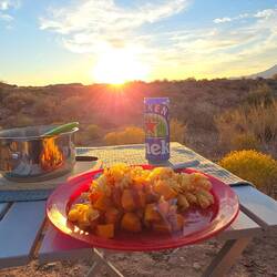 Auf BLM Land den Platz für die Nacht ergattert, lecker gegessen und einen super schönen Sonnenuntergang genossen.