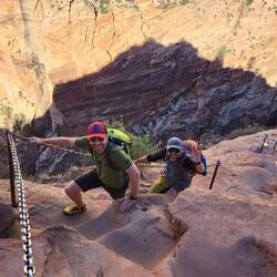 Auf dem Zustieg zum eigentlichen Angels Landing Startpunkt habe ich Adrian und Jean aus Süddeutschland, nahe der Grenze bei Salzburg kennen gelernt. Mit ihnen zusammen, habe ich die Tour problemlos geschafft. Die Videos zeigen aber, dass es nicht zu unterschätzen ist.