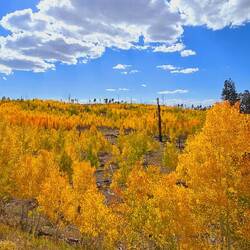 Ich habe mich entschieden weiter in Richtung Valley of Fire zu fahren und unterwegs zu rasten. Beim hinaus fahren, habe ich nochmals die Espen Wälder bestaunt.
