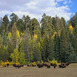 Danach bin ich durch die mit goldenen Espen durchsetzten Wälder hinauf zum North Rim gefahren, habe wieder mal Bison gesehen, habe mir Infos beim Visitor Center geholt und bin zum Cape Royal gefahren um den Sonnenuntergang zu sehen.
