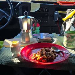 Am Mittag haben wir uns getrennt, und ich ging auf dem Camping Platz Duschen und Wäsche waschen. Schliesslich bin ich zum Abendessen eingeladen.
