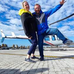 Da es gestern nicht aufgehört hat zu regnen haben wir auf Fotos verzichtet. Zur Info wir sind lediglich zur Waterfront (Hafen) gefahren bzw. haben uns fahren lassen. Uber ist nicht so mein Favorit, aber das sicherste Fortbewegungsmittel in Kapstadt, vor allem abends. Nach den Tagen in den Parks und kleineren Orten, war das erst mal ein Kulturschock. Soviele Menschen und alles so laut. Ganz anders als im Zelt im Amakahla Game Reserve. Aber heute war das schon ganz anders. Wetter war nicht besser, aber was solls. Wir nahmen den Hiphop (hop on hop off) Bus und entschieden uns für die blaue (2h&50km) Route. Es ist wie immer sehr informativ und wir konnten uns gut einen Überblick verschaffen. Mittlerweile schien sogar die Sonne. Wir spazierten im Botanischen Garten, machten eine kurze Pause am Hafen von Hout Bay (muss nicht sein, wir fühlten uns dort auch nicht wohl) und haben Mittag gegessen am Camps Bay. Bis auf den einen, waren es lohnenswerte Stopps. Heute hörte ich oft von meiner Frau, dass sie mich liebt. Ich weiss nicht, ob es daran lag, dass ich wie immer zu ihren Fragen die "richtigen Antworten " hatte, ihr die gemeinsame Reise wirklich gefällt oder sie einfach nur aufgeregt war, da wir noch am Nachmittag einen Helikopterflug gebucht hatten. Ich tippe auf eine Mischung von allem. Der Flug war grandios und für uns beide das erste Mal. Sophia durfte sogar vorne sitzen, dafür hat unser Pilot Kevin das ganz gut gemacht.