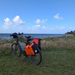 Achtzig Kilometer geplant und neunzig gefahren, so geht Radwandern. 😂 Zum Glück ist die Strecke meist flach und der Sturm von gestern hat sich auch gelegt. Wir kommen gut voran und planen unserBaca lagi
