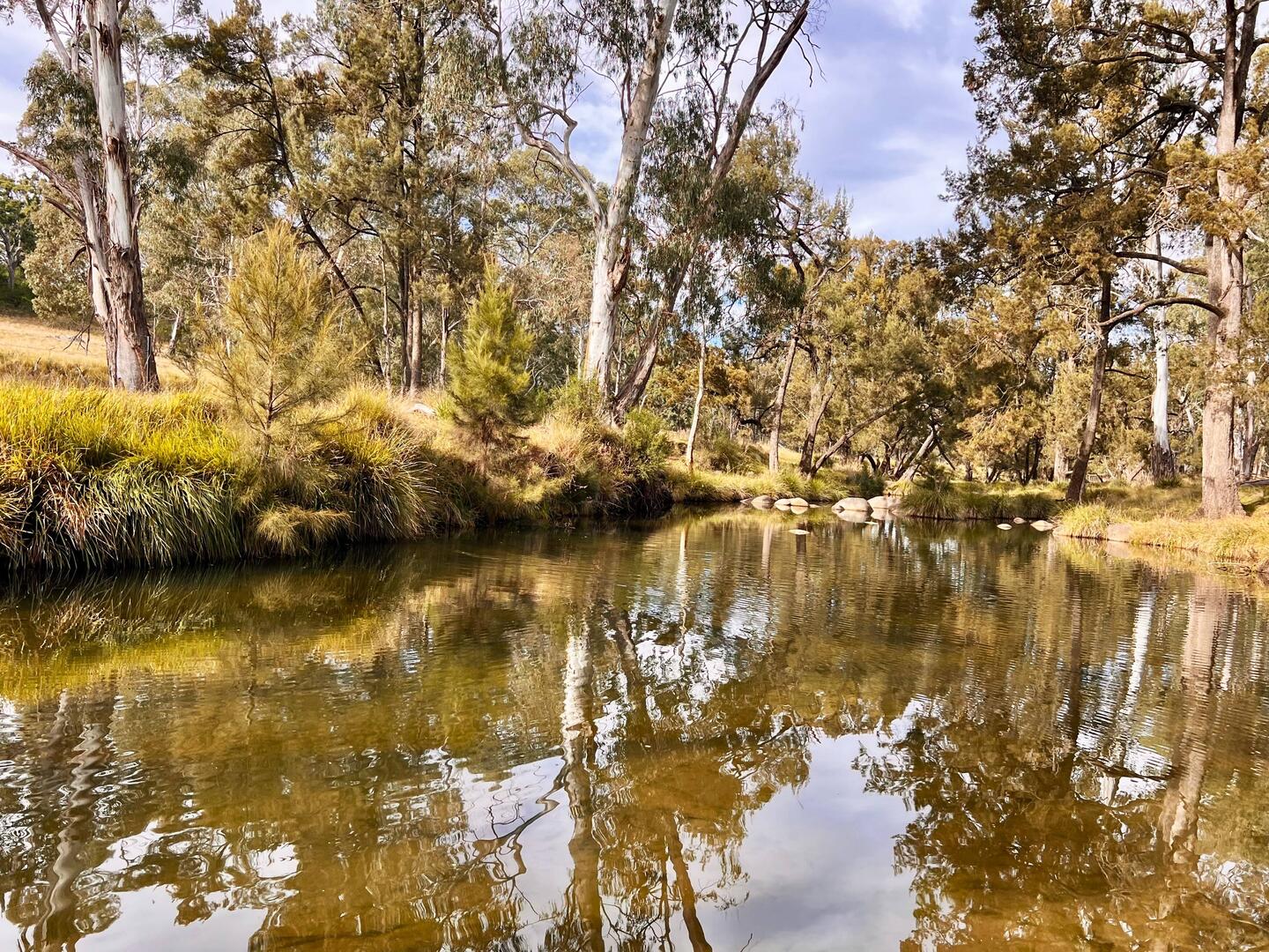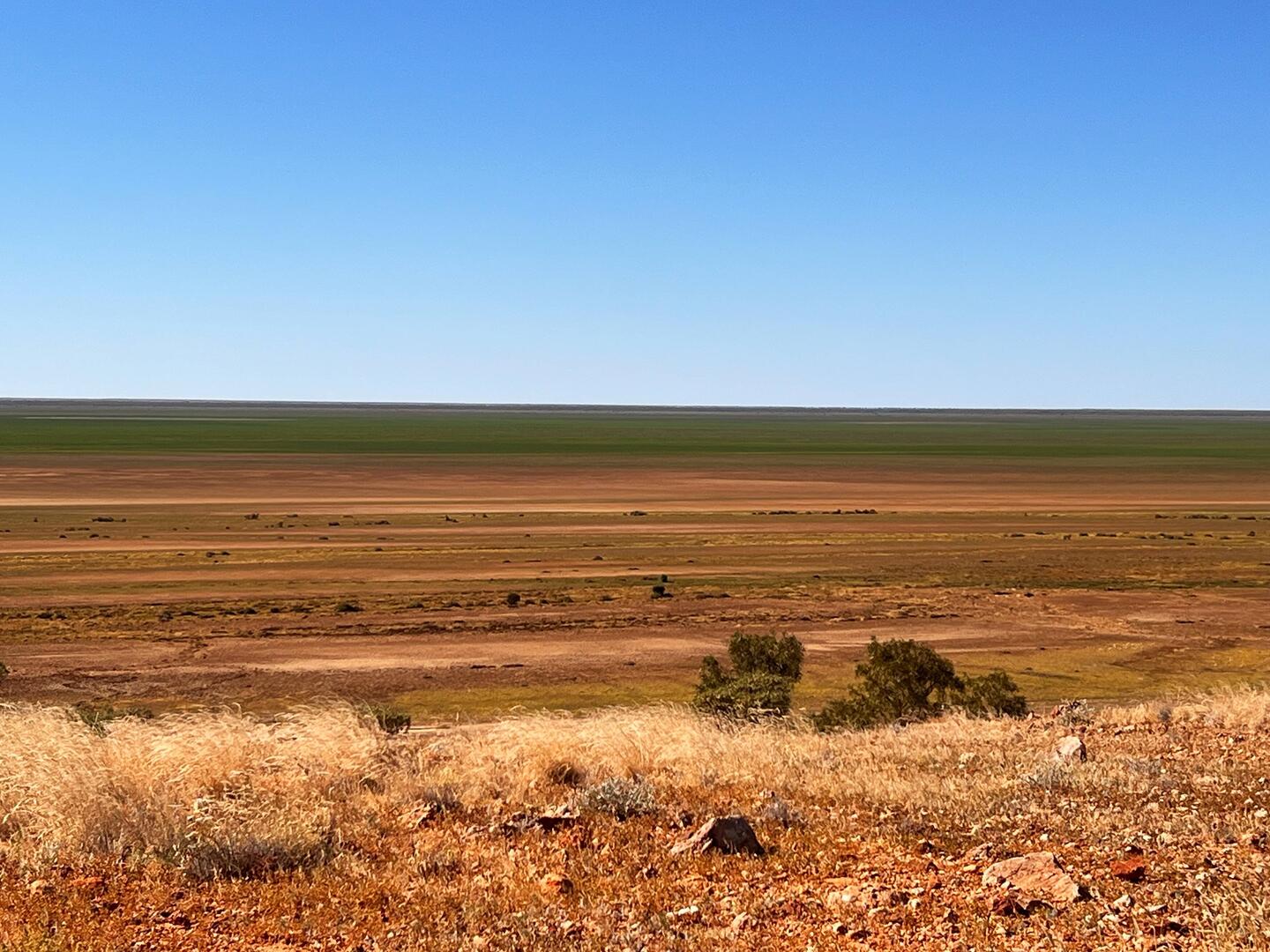 The country changes within a few kilometres - from dry dirt to rich green grass and trees illustrating where the water from up north travels through this region.