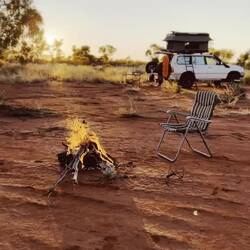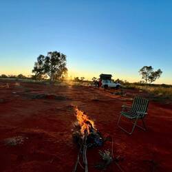 Pulled off the Sandover Hwy on to a clearing near a station entrance to set up camp for the night. A south easterly is blowing so it is likely to get chilly later tonight.