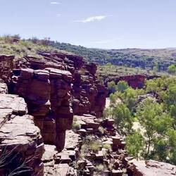 On our way out of the gorge we stopped at the 300 year old ghost gum and then turned off on to the very rough and slow 4km side trip to the rock holes, where we walked up to a lookout.
